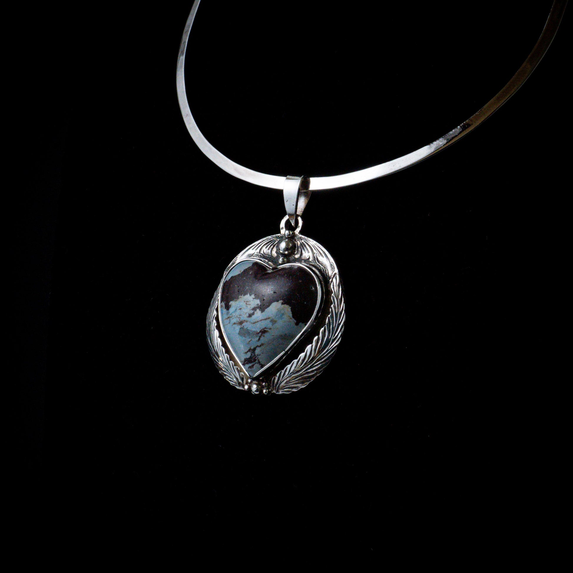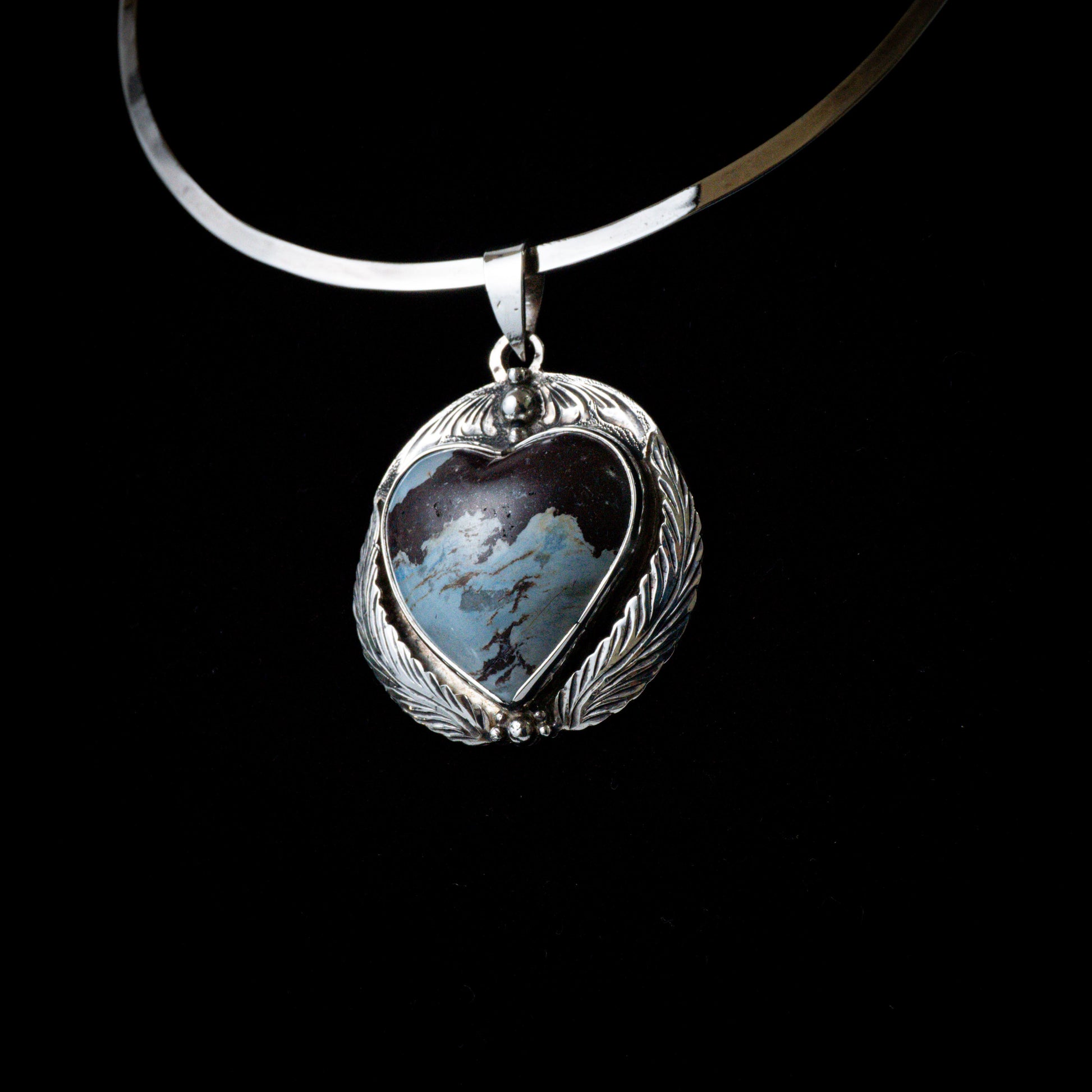 Corazón piedra cielo con plata. 925 mide aprox 4.5X4.5cm, no incluye gargantilla.