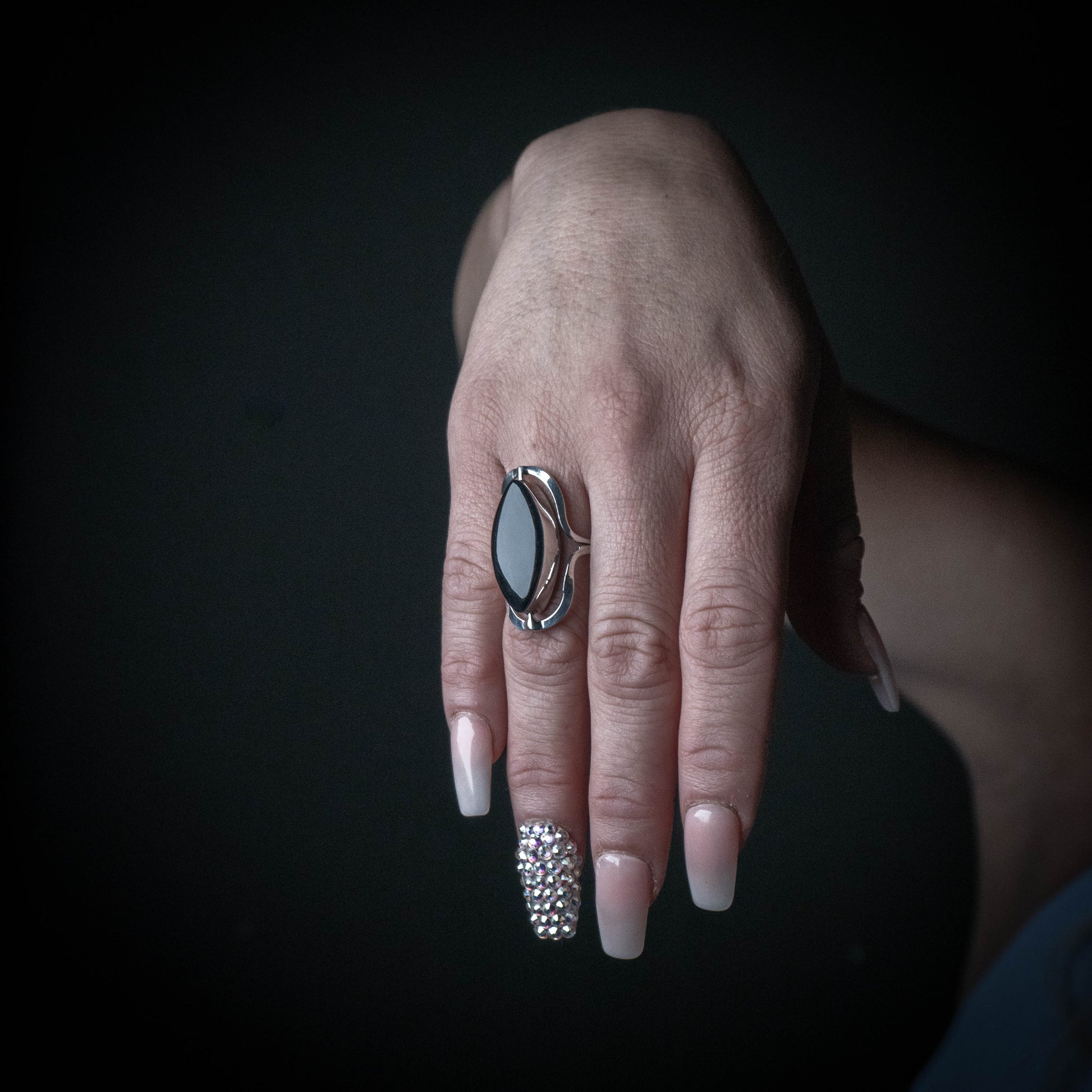 Anillo de plata .925 con obsidiana reversible con turquesa.
