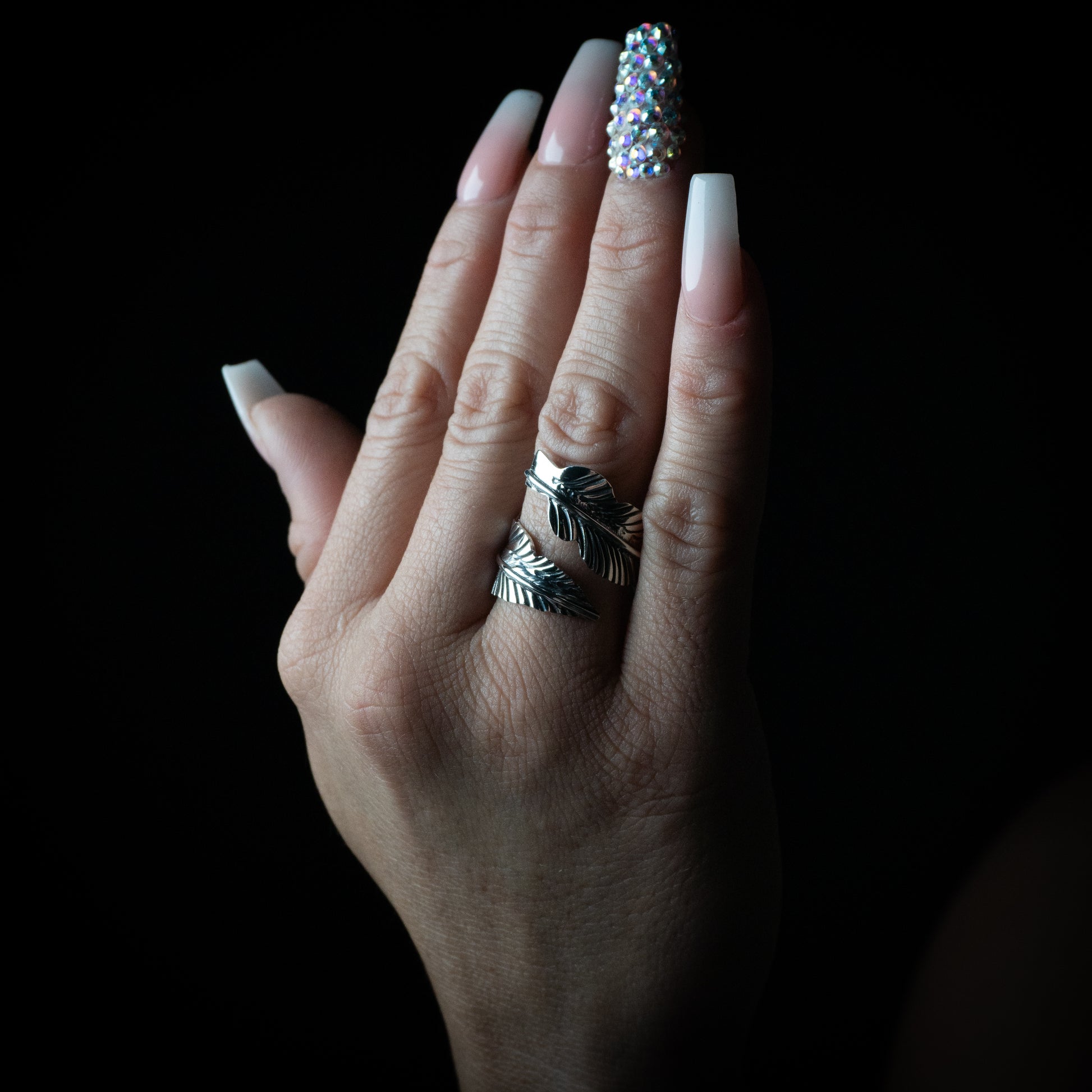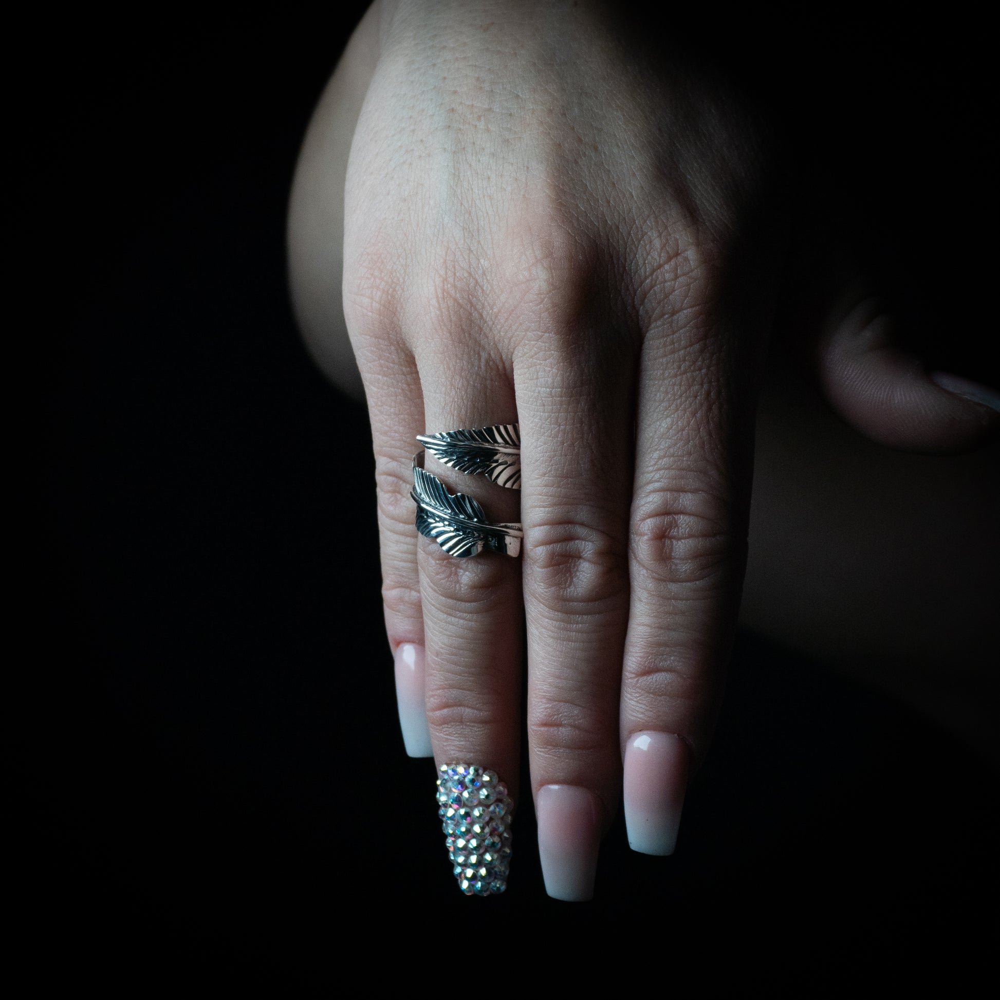 Anillo en plata .925 en forma de pluma. Medida Ajustable.