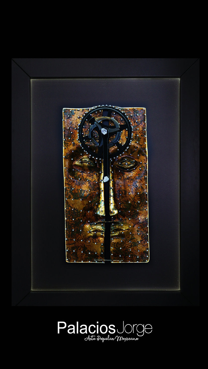 Barro en hoja de oro, aplicaciones cristal swarovski, cuarzo, reciclado acero.
