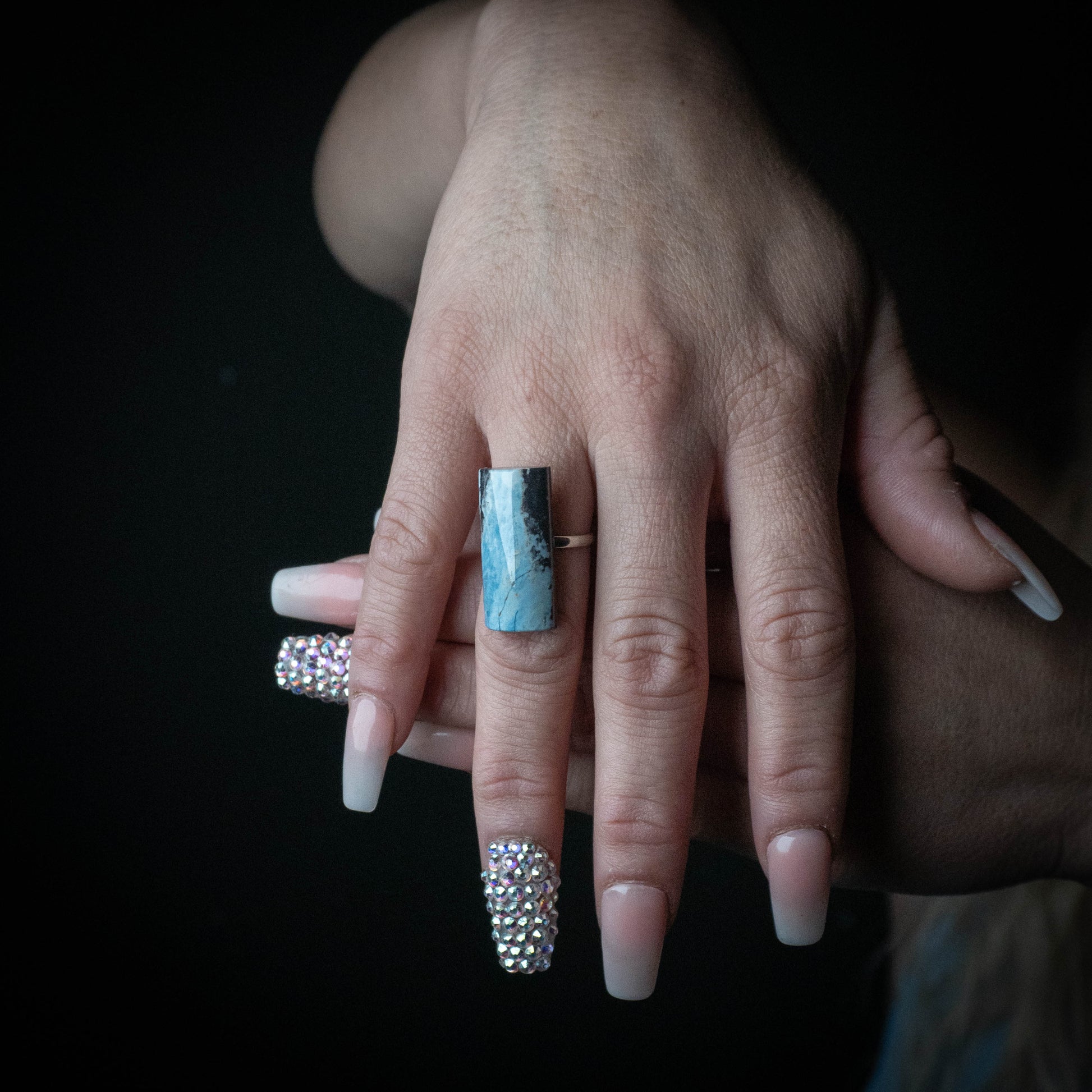 Anillo piedra cielo con aro de plata .925 medida ajustable.